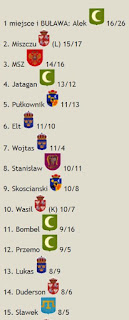 Marek (Tatarzy) vs Misiek (Szwecja), żołnierze z 14 Dońskiego Pułku Kozaków na tle będzińskich koszar bacznie przypatrują się bitwie. Misiek wygrał 5:1 i po pierwszej rundzie znalazł się na drugim miejscu klasyfikacji generalnej. Tam trafił...ale o tym za chwilę.